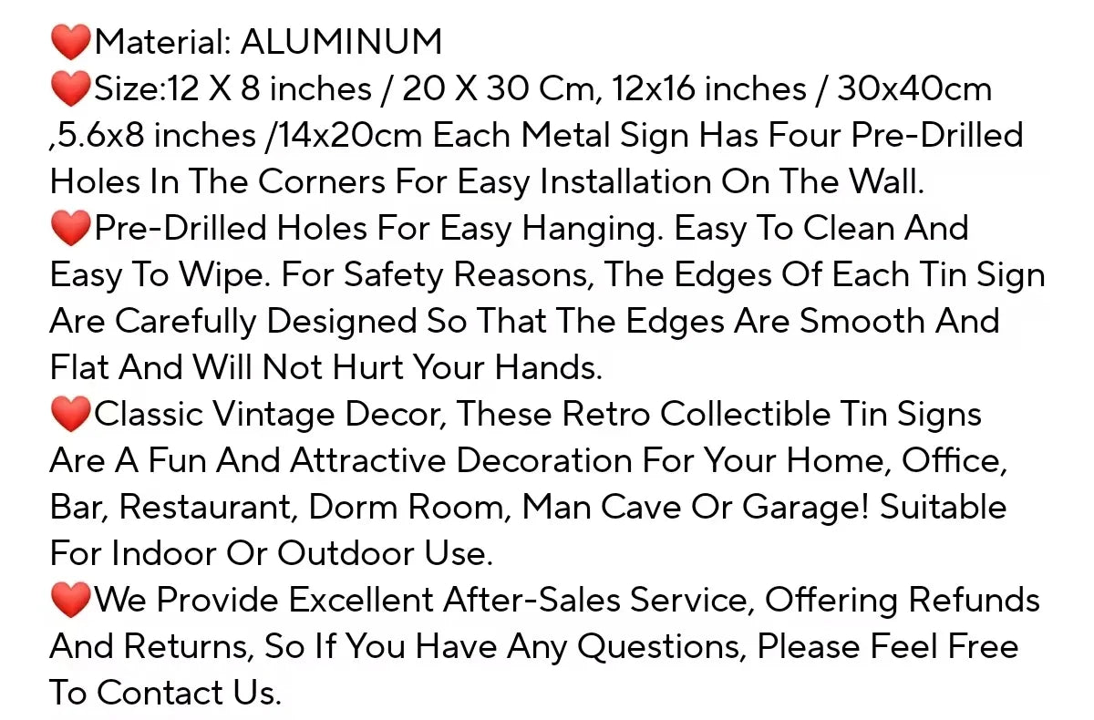 Classic Plaque Vintage Metal Sign with pree drilled holes